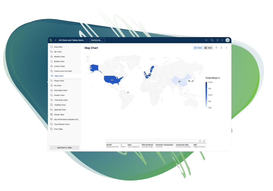 Business users can discover root causes for margin leakage, review and quantify profit opportunities, and monitor price compliance through dashboards that can be easily configured and packaged for unique needs.