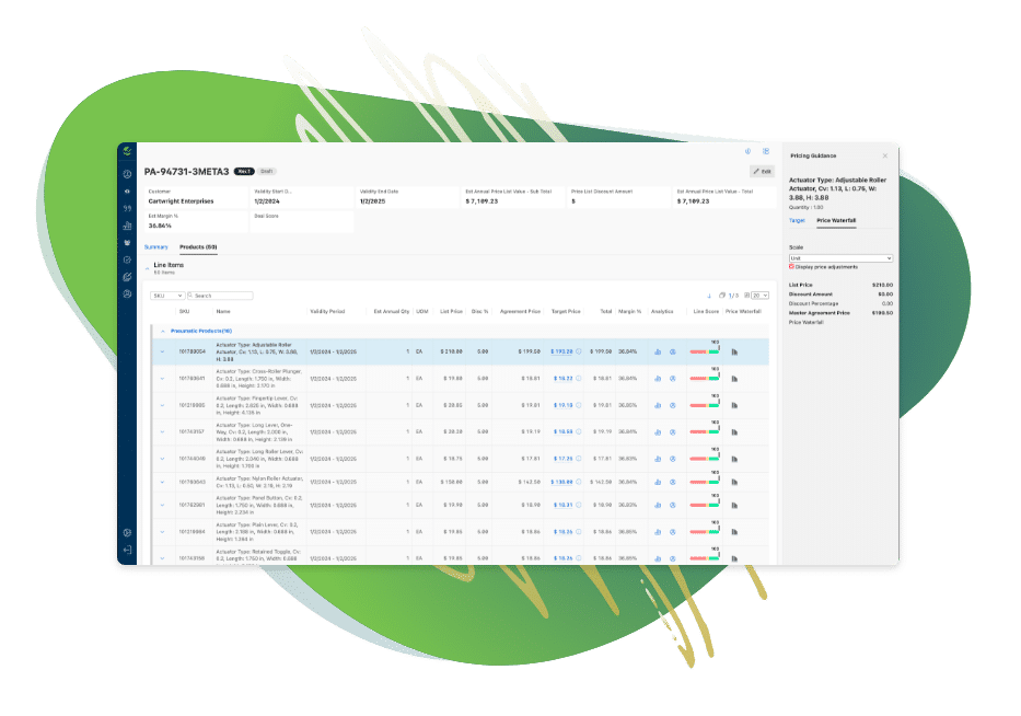Now complex pricing and discounting logic can be simplified within a single agreement, allowing Sales reps to effortlessly quote across a large product portfolio with the latest prices for each customer or buyer group.