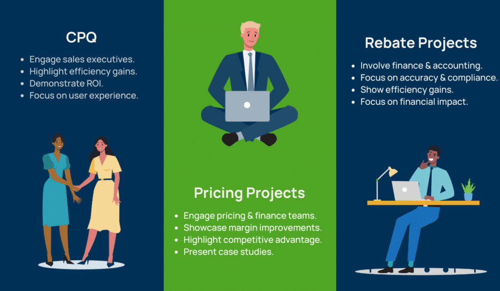 - Engage sales executives – Since CPQ projects directly impact the sales process, involve sales leaders early on to understand their pain points and requirements.
