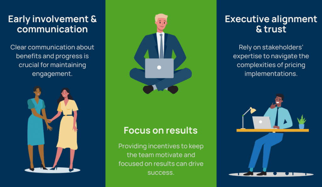 Ensure continuous alignment with executives throughout the project. Rely on the expertise of both internal and external stakeholders to navigate the complexities of pricing technology implementations.