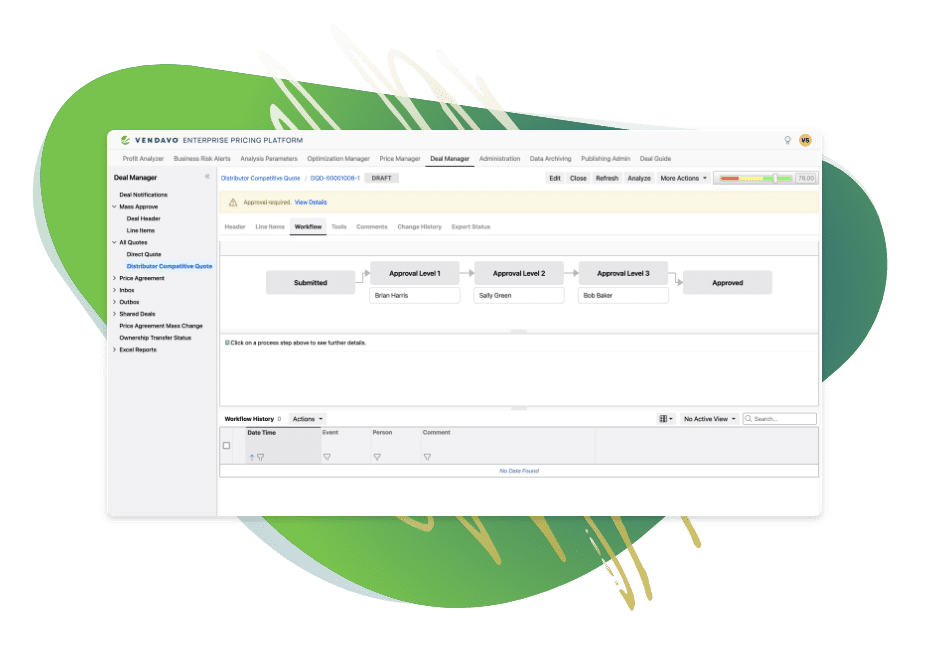 Fast track pricing decisions through auto-approval of deals within guidance thresholds. Reduce deal time-to-close and increase win rates.