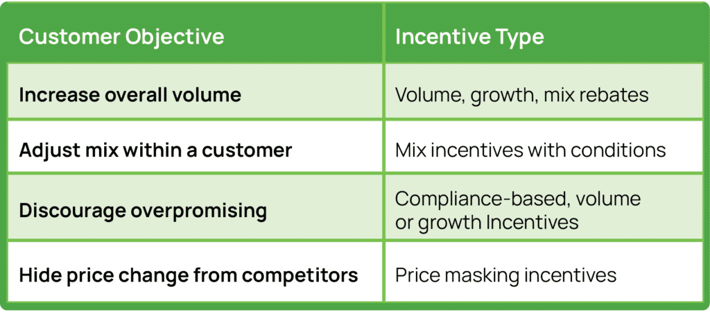 Creating a set of segmented incentive templates will help you reduce complexity, ensure the right incentive is applied to the right customer objective, and serve as your “rebates playbook.” This is a strategic process that means you must meticulously design incentives, set clear performance metrics, and maintain a commitment to transparency and improvement.